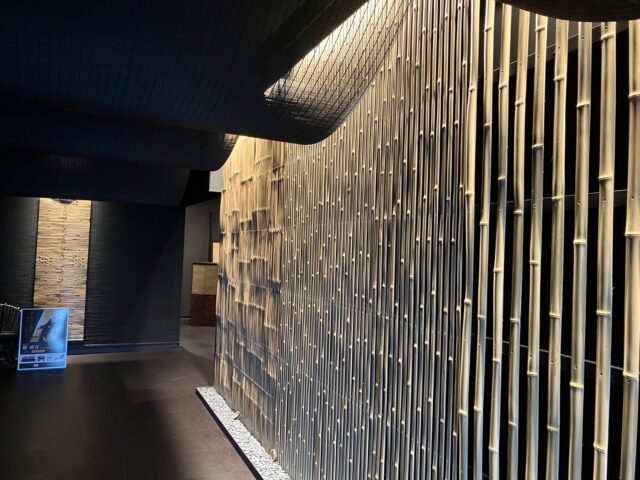 エントランスには壁に竹が意匠的に配置され、間接照明に照らされ上質なエントランス空間になっていました。