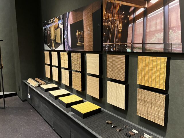 ショールームには竹すだれが展示してあり、その生地感や編み方、透け感などを体感することができました!