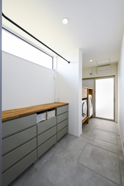 具体的には、脱衣・ランドリールームの中に以下の要素をギュッと凝縮させます。