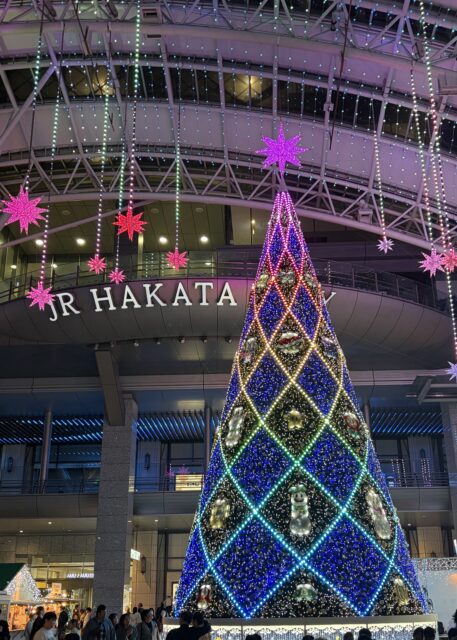 話題のNintendo FUKUOKAも博多駅にできて、今年のクリスマスツリーはマリオ仕様になっています!