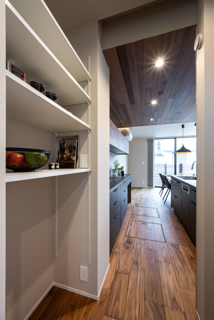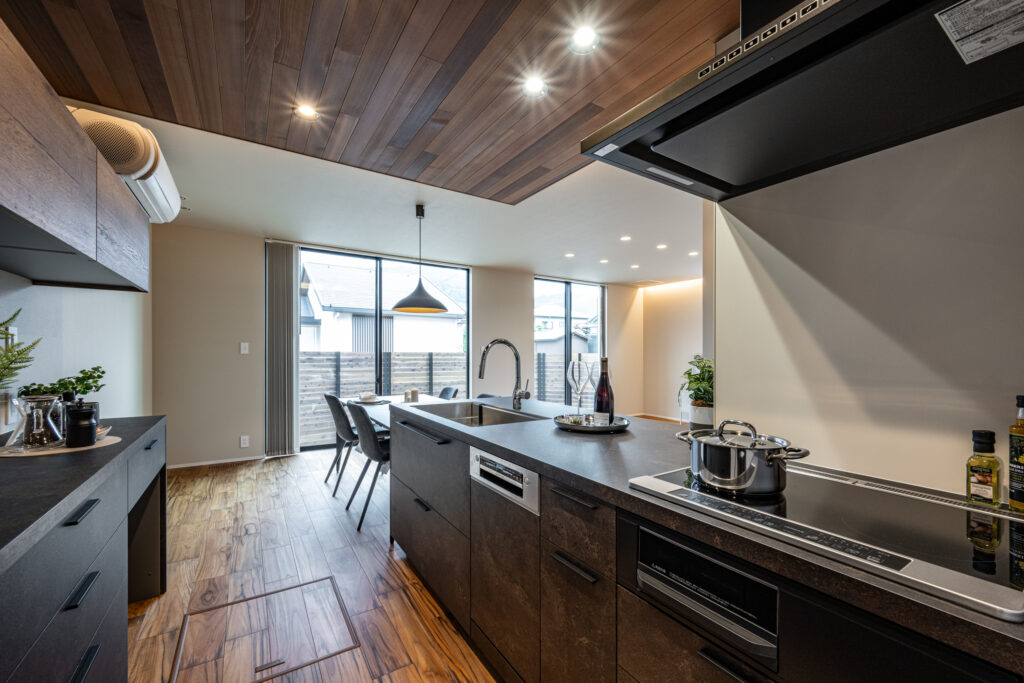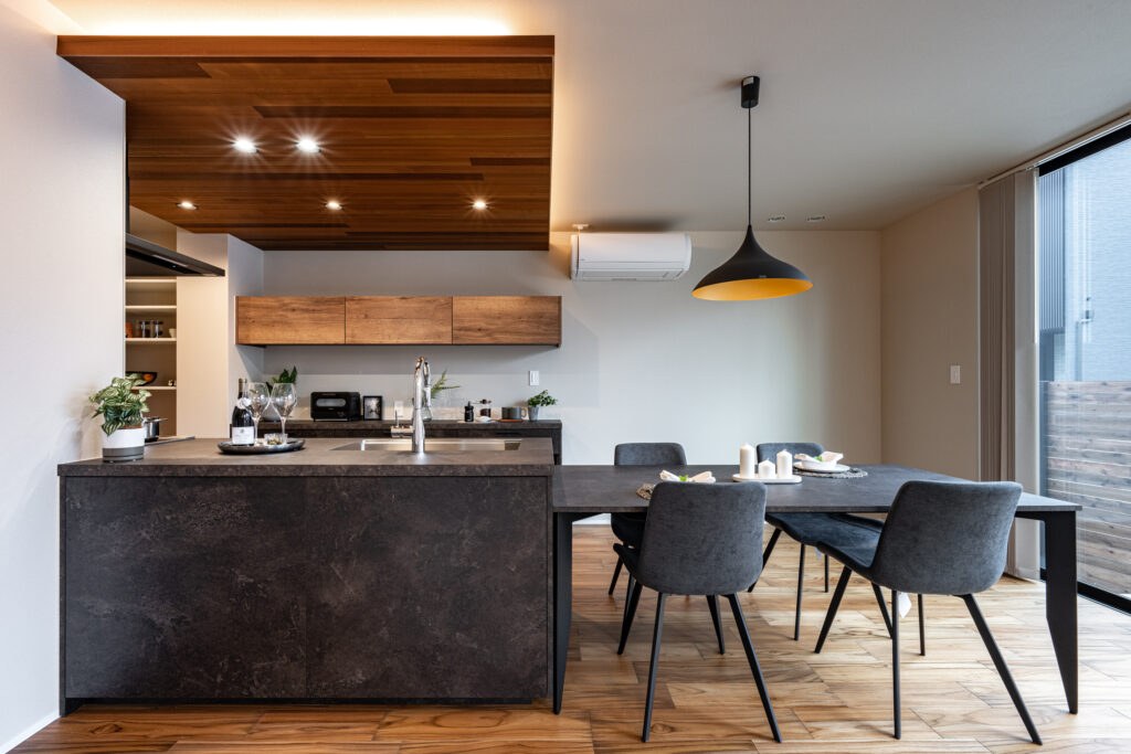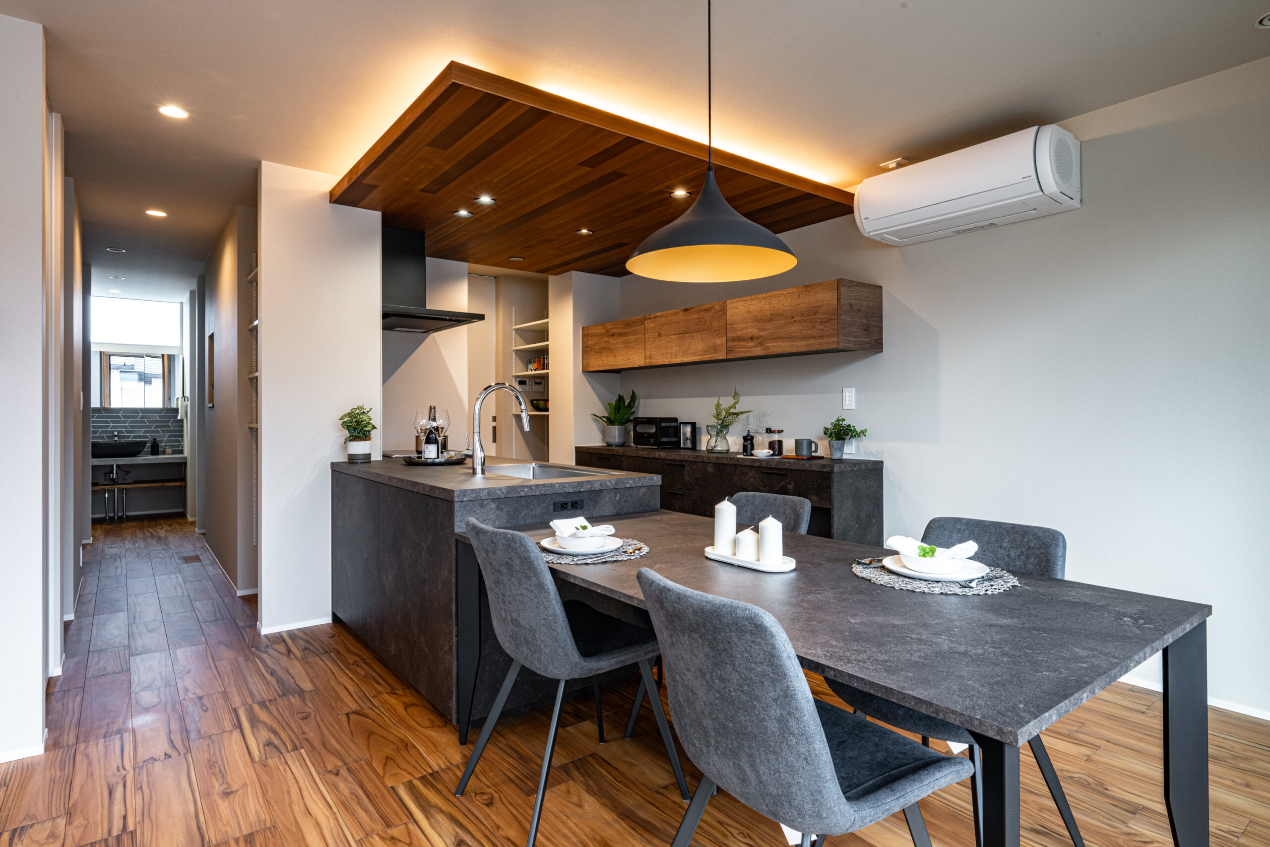 外観、内装ともに落ち着きのあるインテリアでまとめたお家。リビングと洋室には、将来の間取り変更を見据えた天井下地をあらかじめ設置。