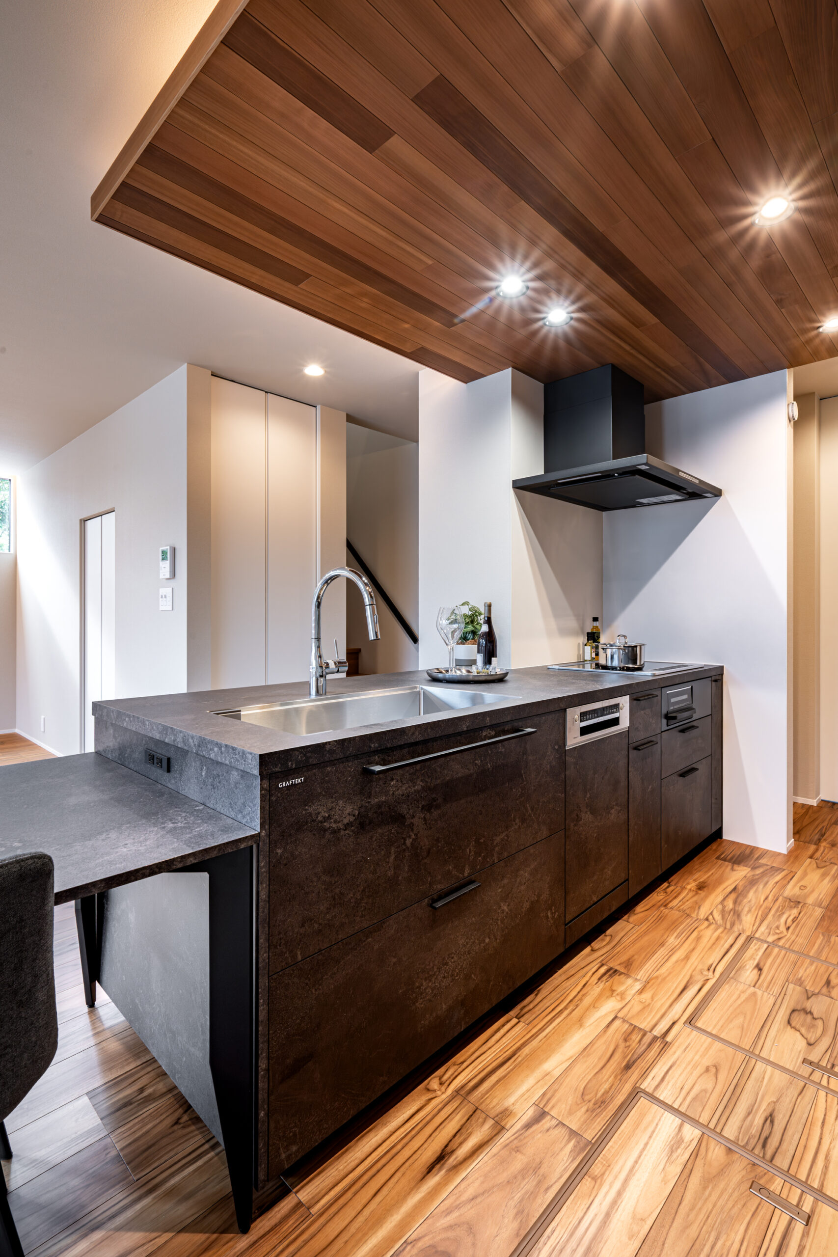 ダイニングと合わせて採用したグラフテクトキッチン。 -