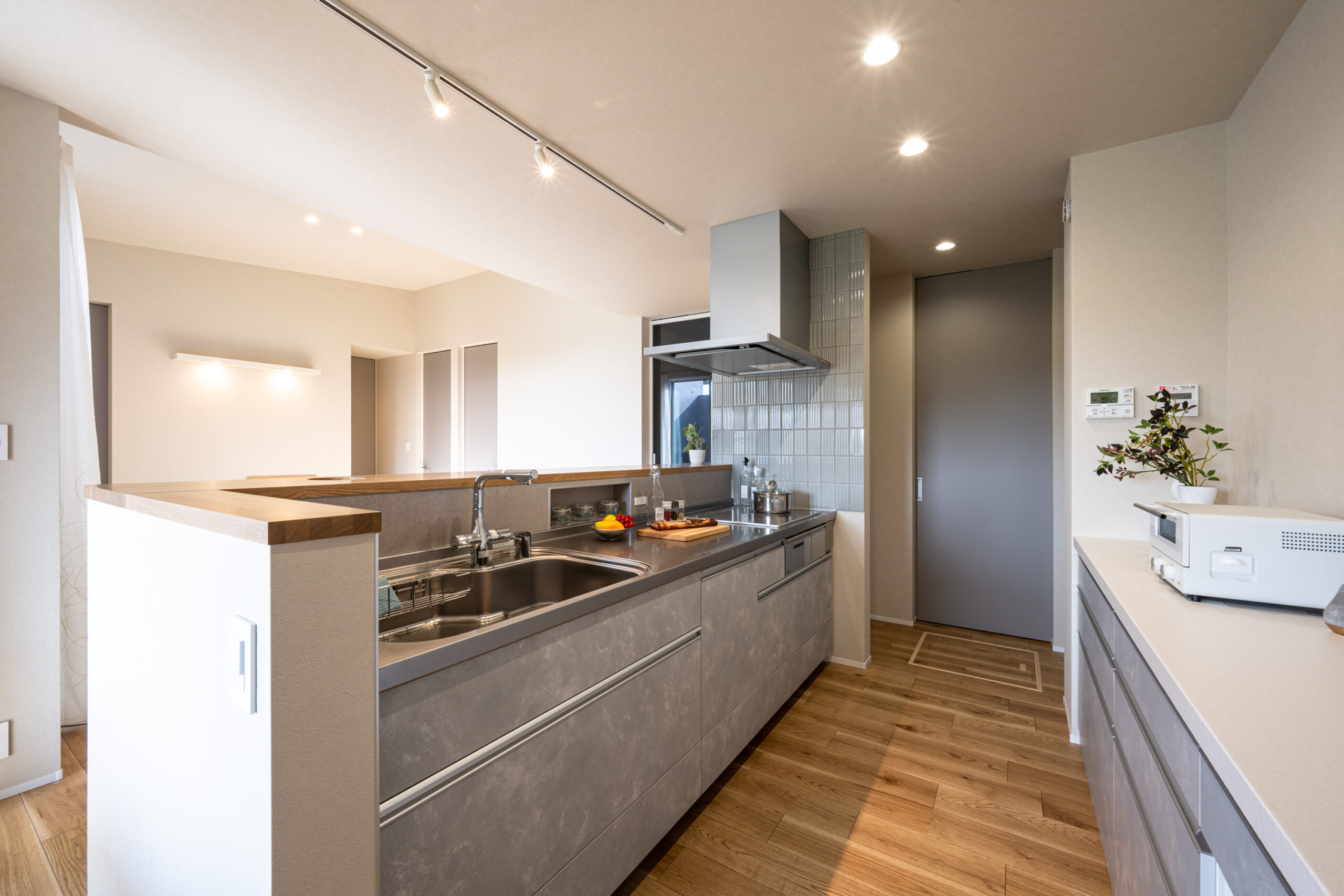 キッチンとダイニングは横並びのため、配膳もラクラク。 -