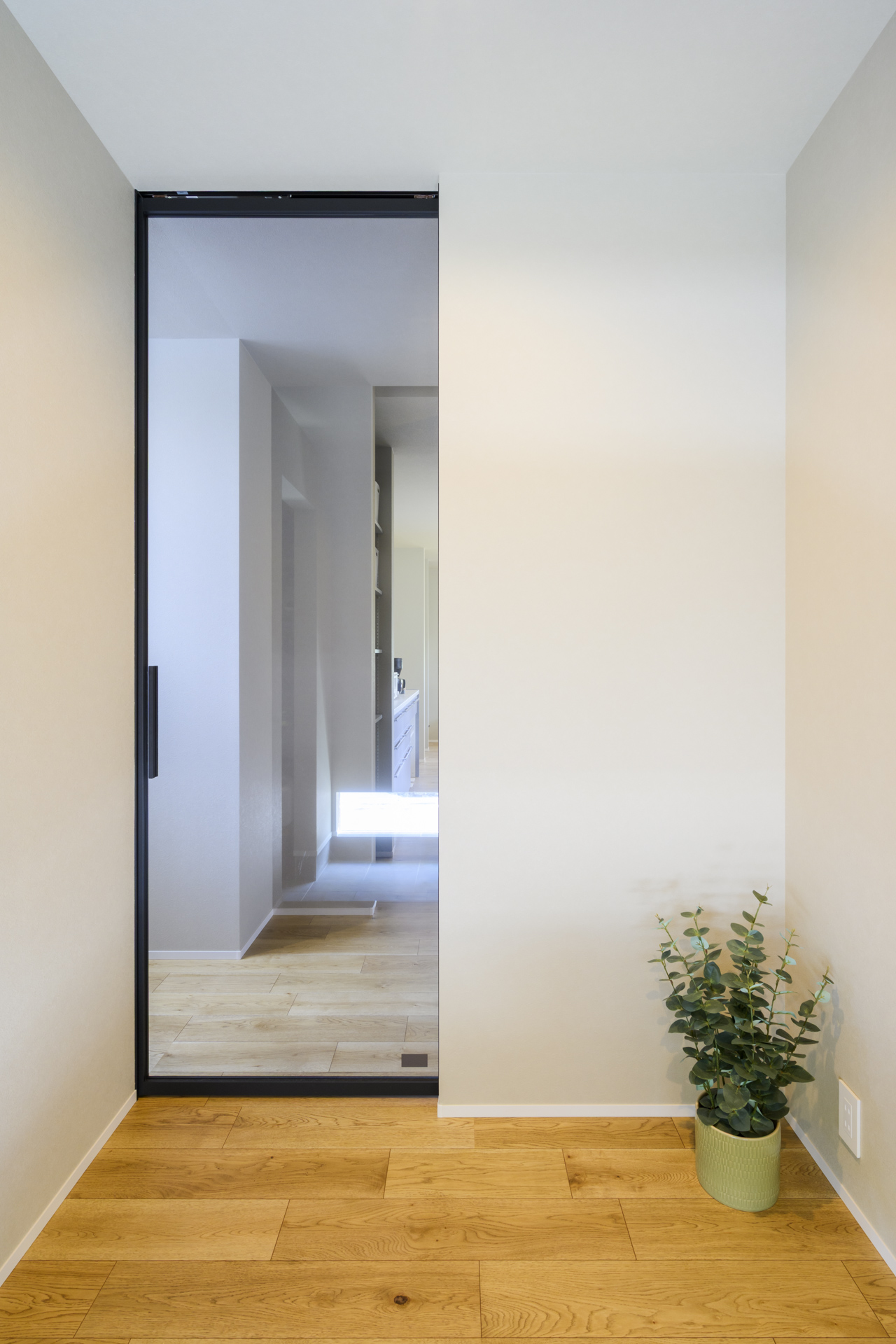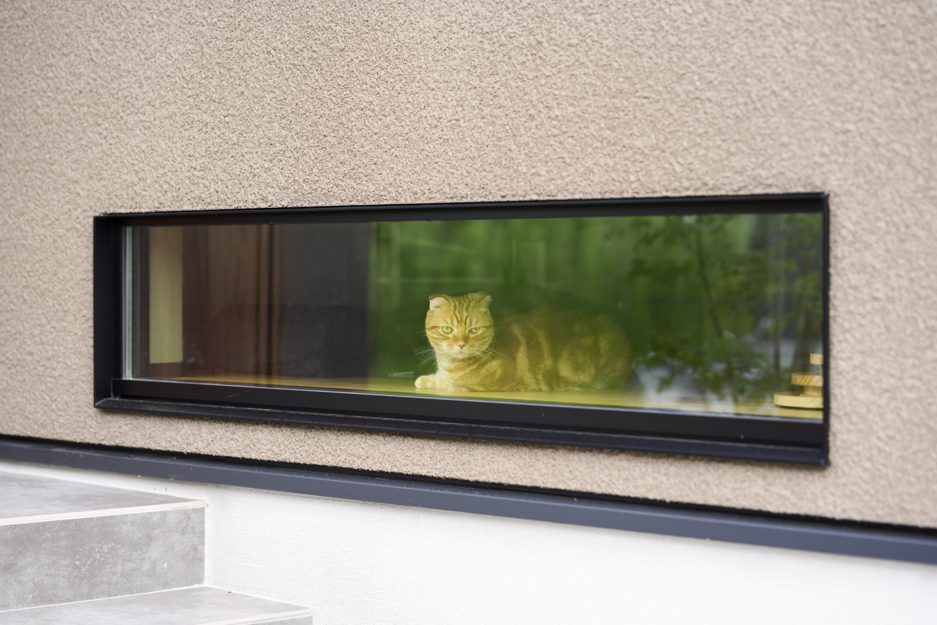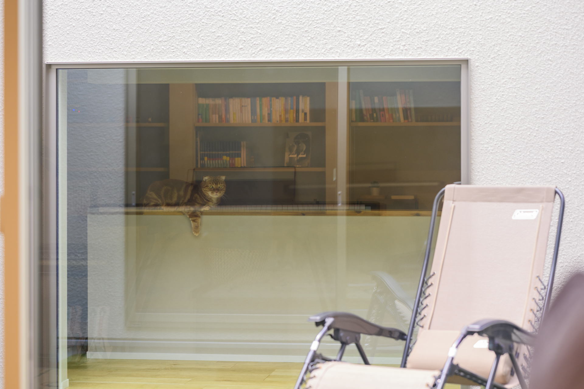 ご家族の帰宅を、愛猫が見守れる玄関横の地窓。