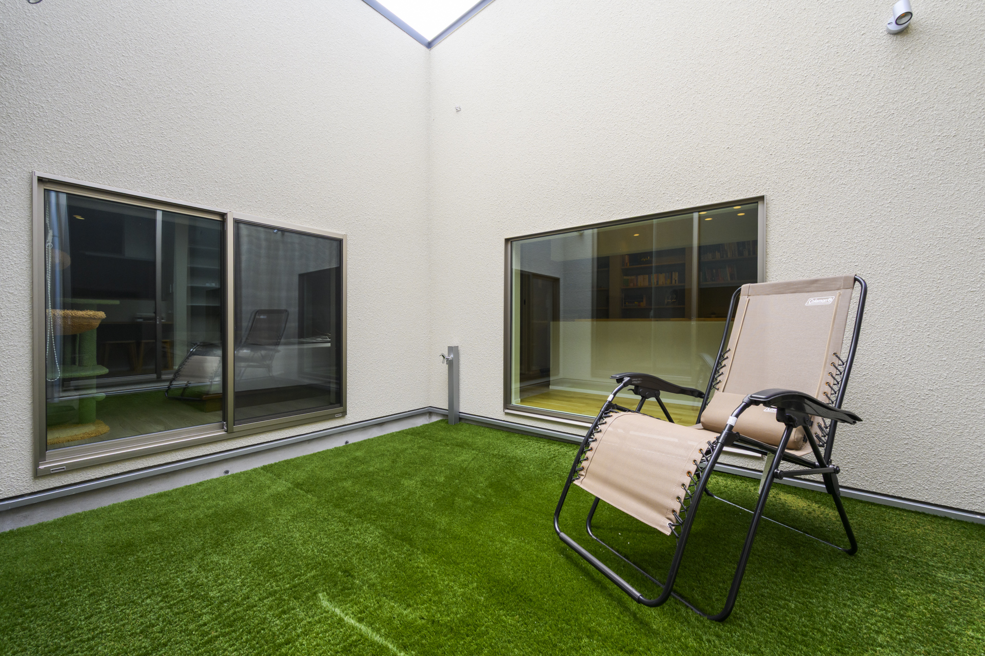 リビングから中庭を通して、愛猫を見守ることもできる安心の間取り。