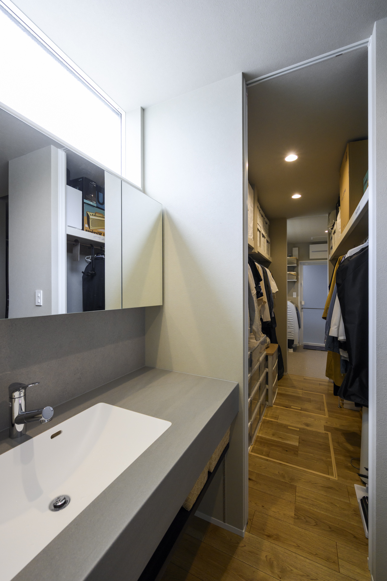 洗面⇔WIC⇔ランドリースペースがつながる家事ラク動線。