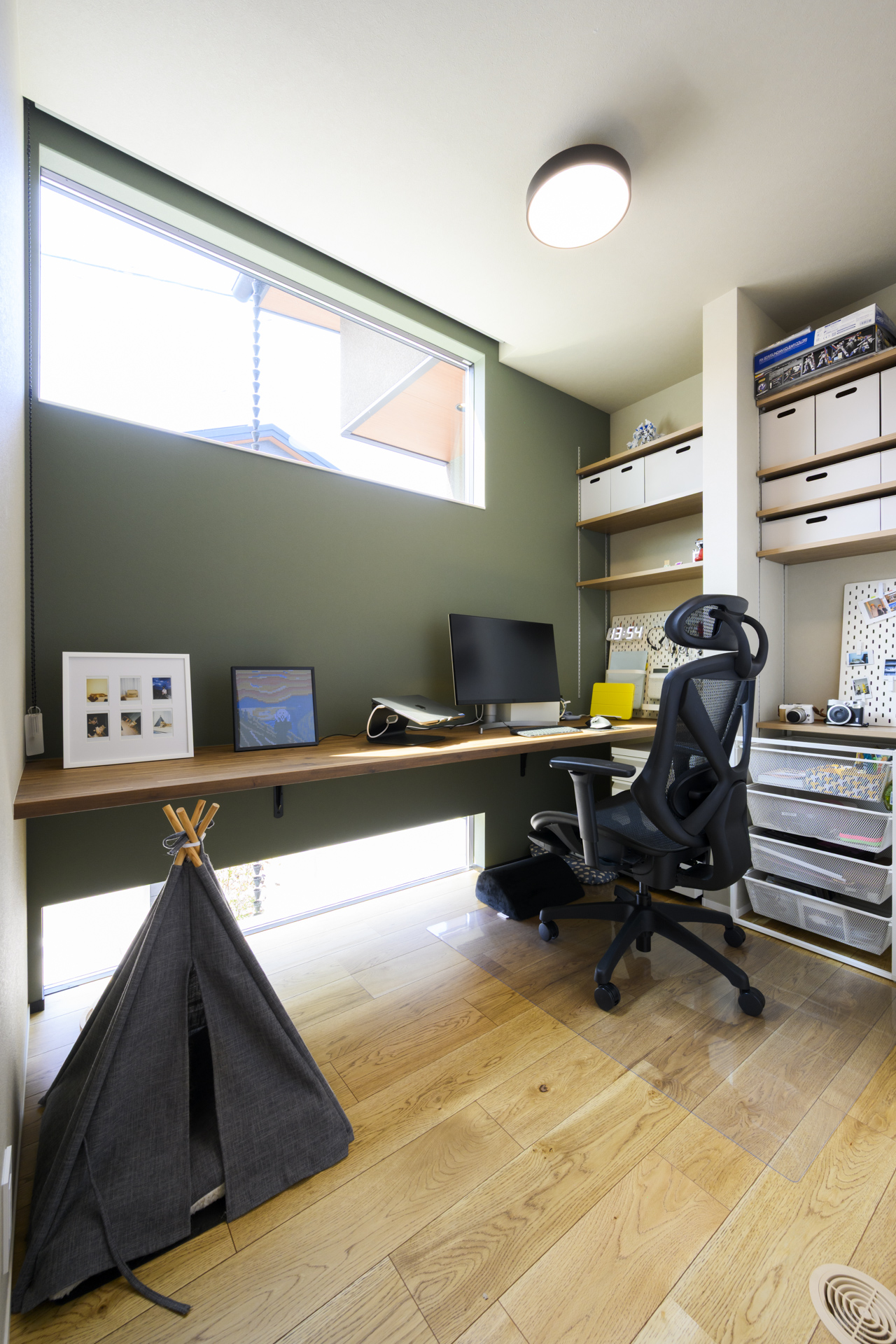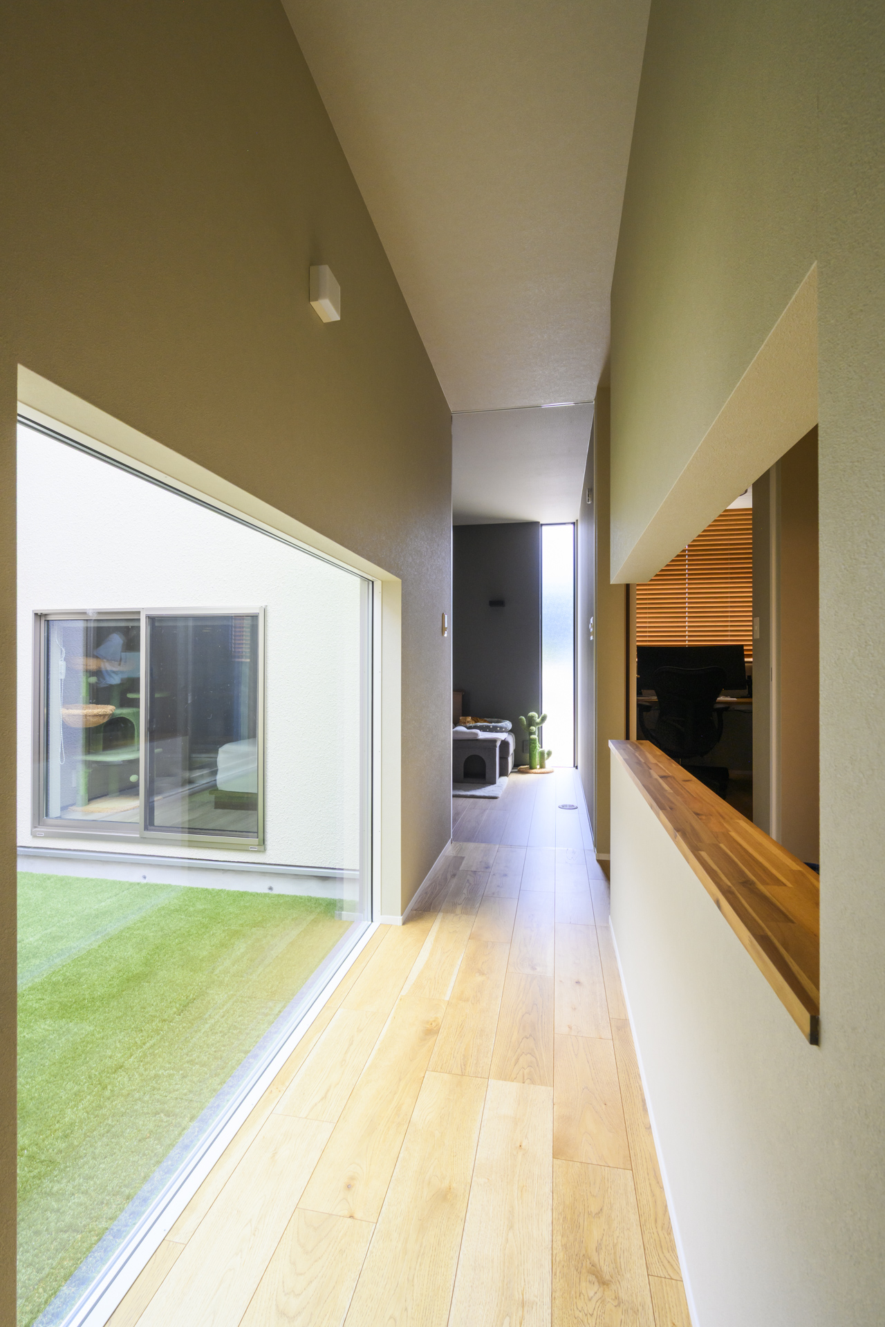 お仕事もはかどる約3帖のワークスペース。地窓は愛猫がご家族の帰りを待つ場所。
