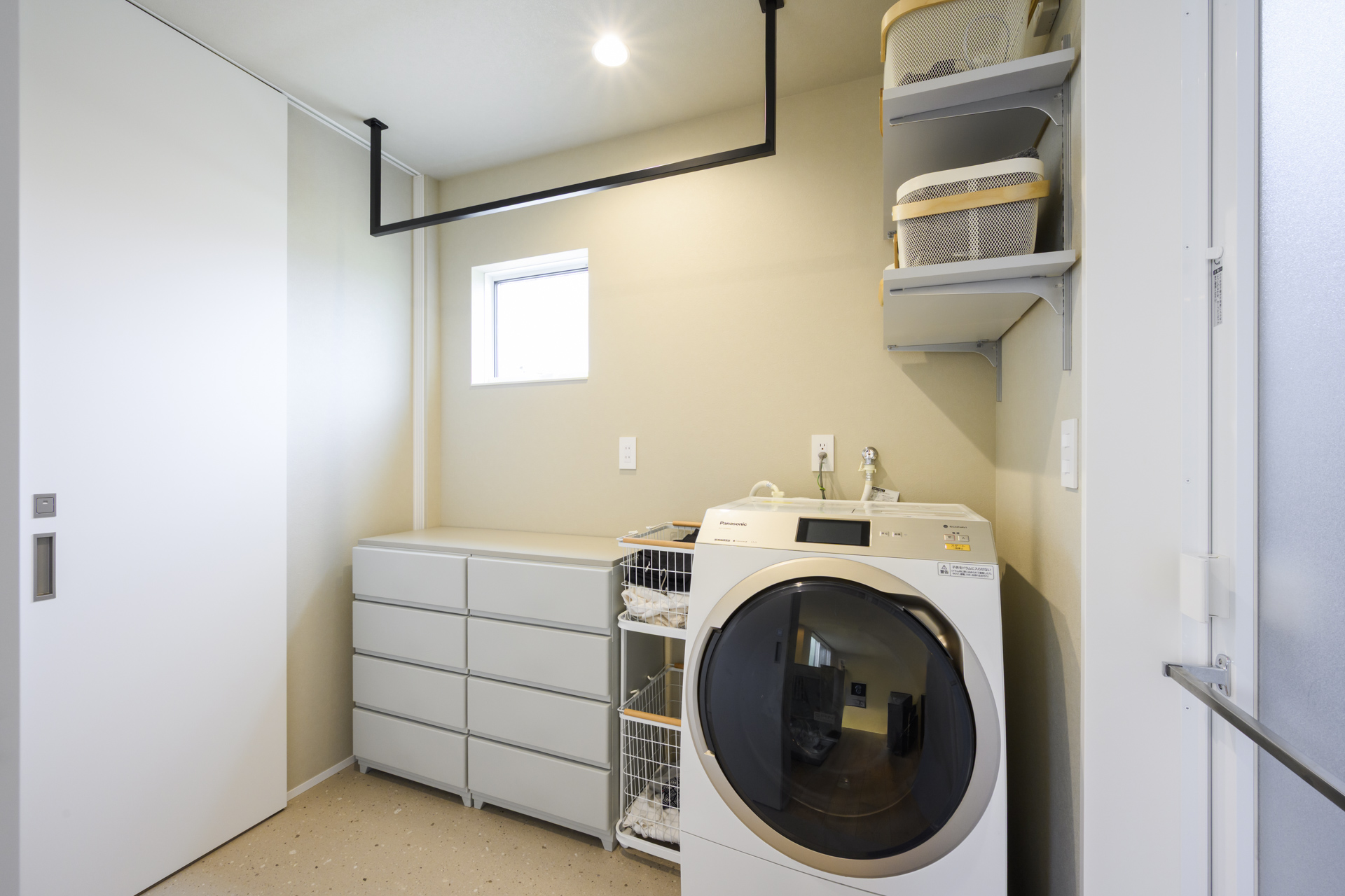 「洗う・干す・しまう」が約2.5帖の空間で完結するランドリースペース。日々の暮らしにゆとりを生み出す、無駄のない動線。