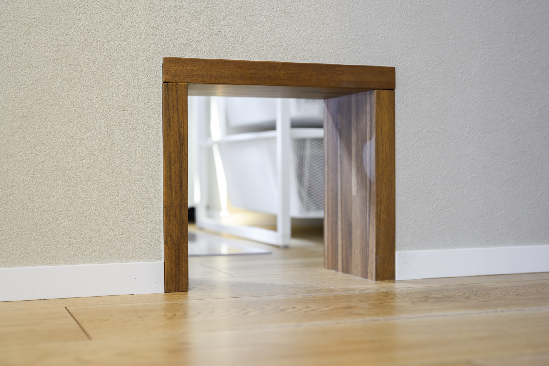 愛猫が自由に出入りできる、ワークスペースとつながる猫通路。