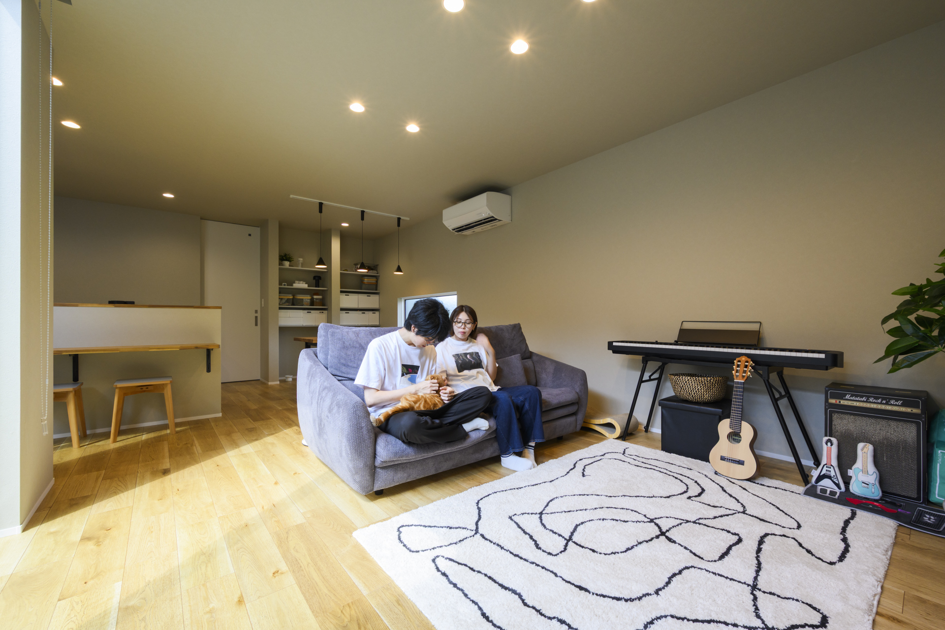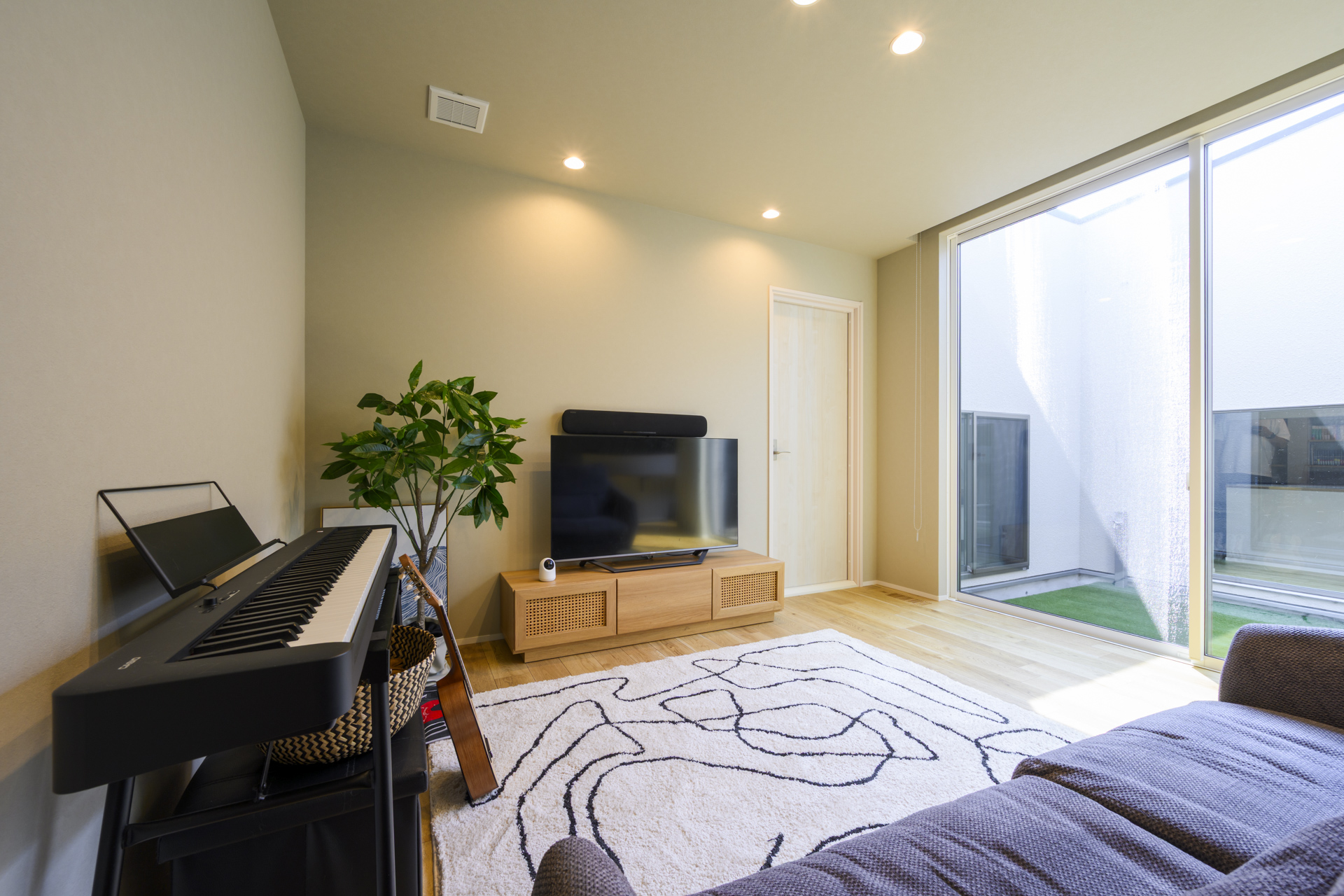 リビングの奥には、趣味の世界に没頭できる防音室を配置。