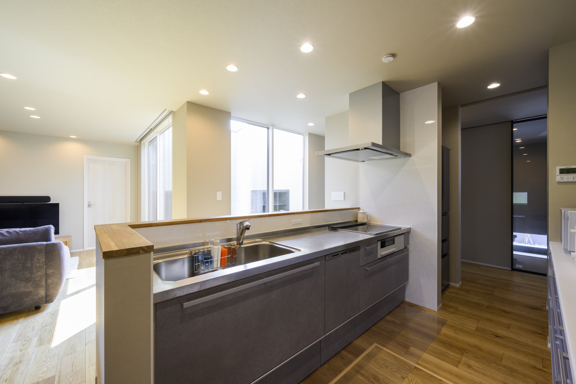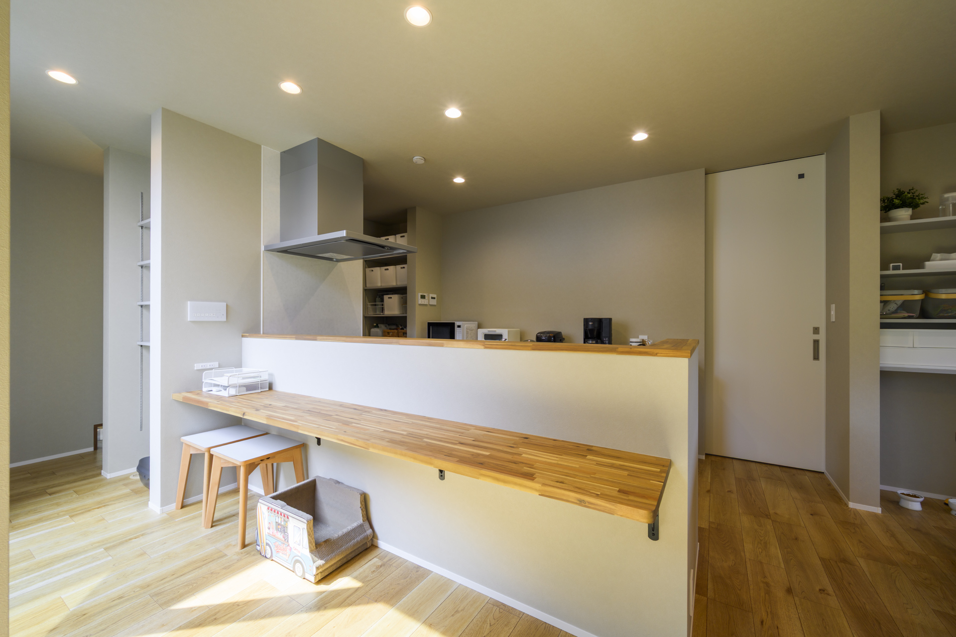 キッチン前面には、ちょっとした作業に便利な造作カウンターを設置。