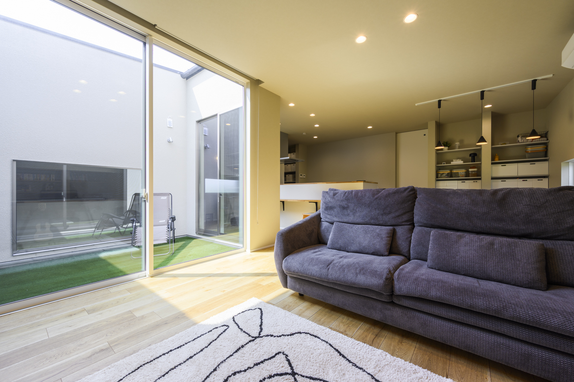 約6帖の中庭とつながり、光と開放感に満ちたリビング。